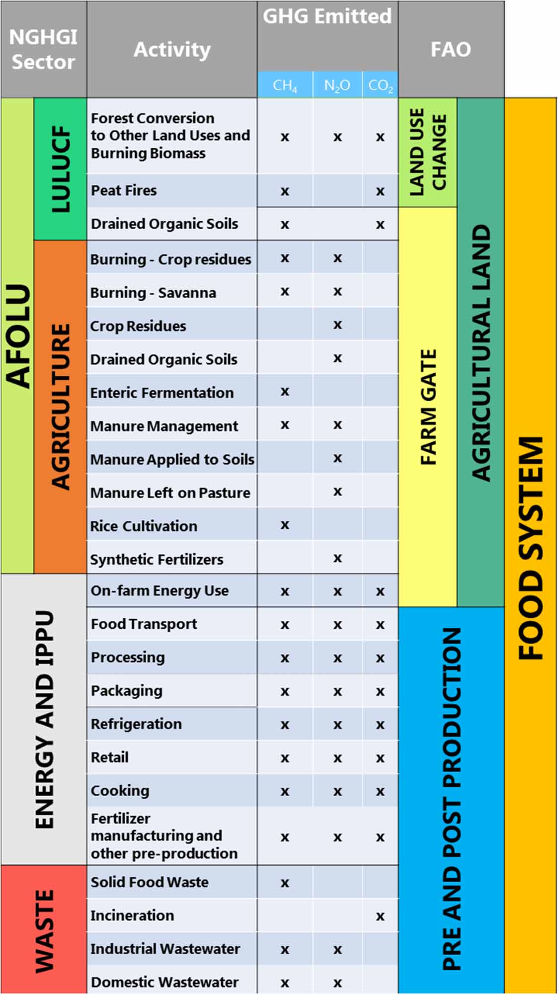 2.1. Comparing IPCC and NGHGI categories to a food system approach