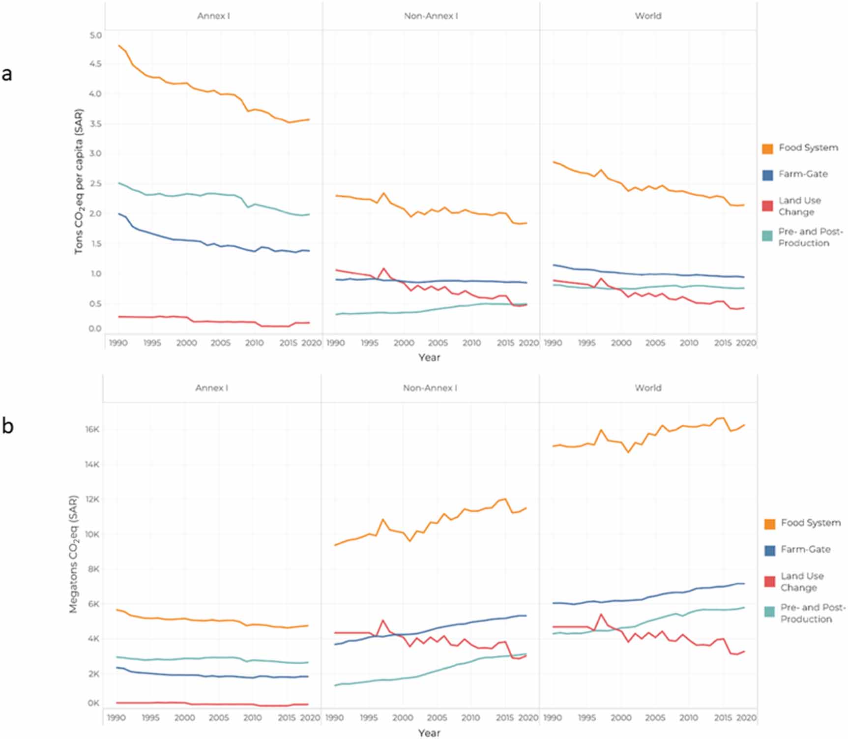 Finally, we used world population data by country from FAOSTAT (FAO 2021b), aggregated at Annex I (AI), non-Annex I (NAI), and globally, to compute per capita food systems emissions indicators overall and by sub-components.