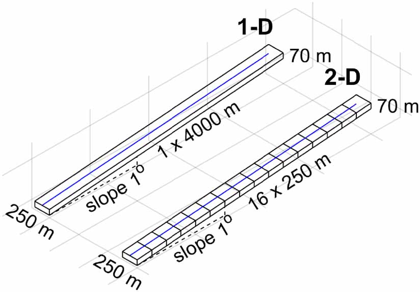 , table 1) values and the 1D and 2D model configuration (figure 1).