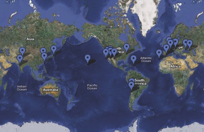 Figure 1. Locations of observatories contributing to the Earth-based campaign.