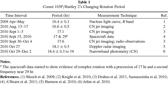 Standard image High-resolution imageTable 1. Comet 103P/Hartley 2's Changing Rotation Period