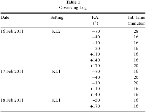 Table 1. Observing Log