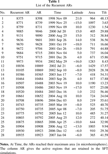 Table 1. List of the Recurrent ARs