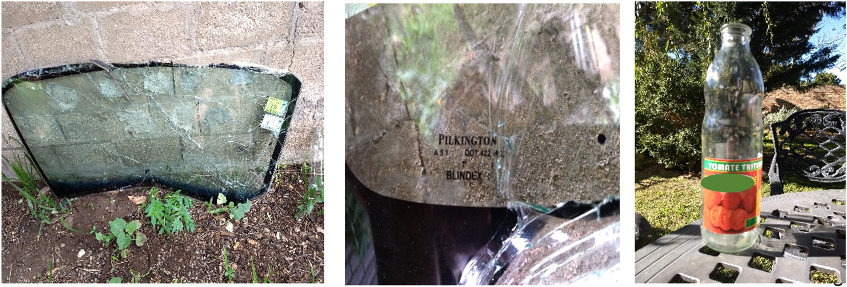 Figure 1. Windshield glass and clear glasses of food containers used.