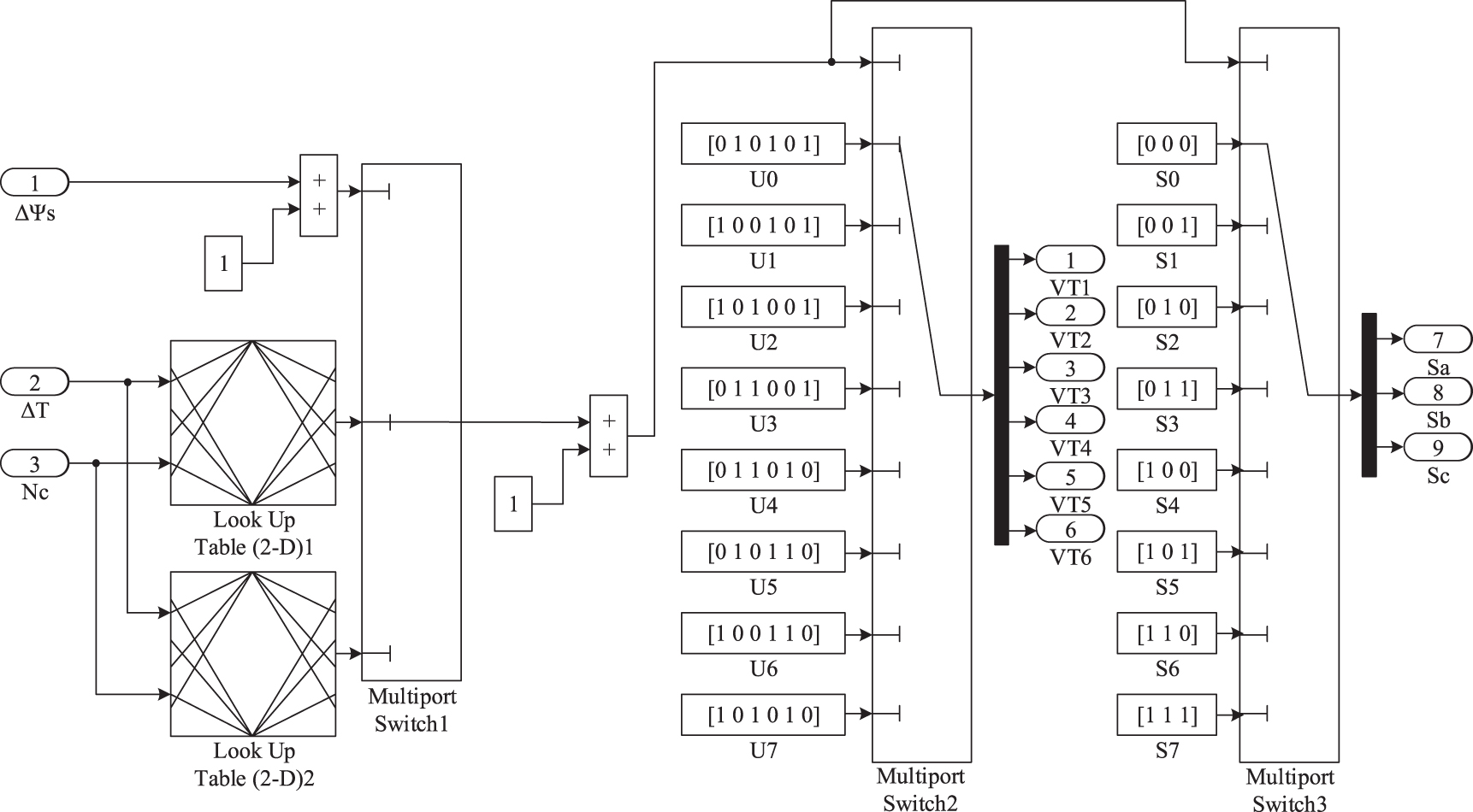 Standard image High-resolution imageThe switching table of power transistors (keys) of the inverter is the basis of any algorithm of functioning of the DTC. The version of the switching table with a three-position torque relay and a two-position stator flux coupling relay is the most common [47, 48] (table 3).