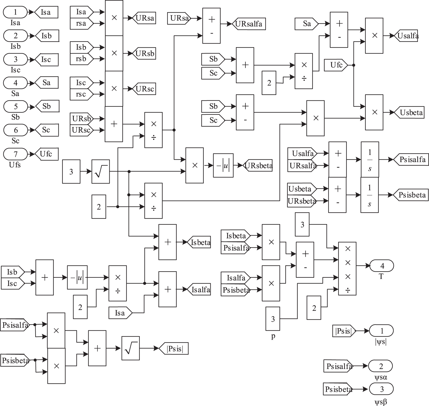 Figure 9. Simulation model of the proposed flux coupling observer in the MATLab software environment.