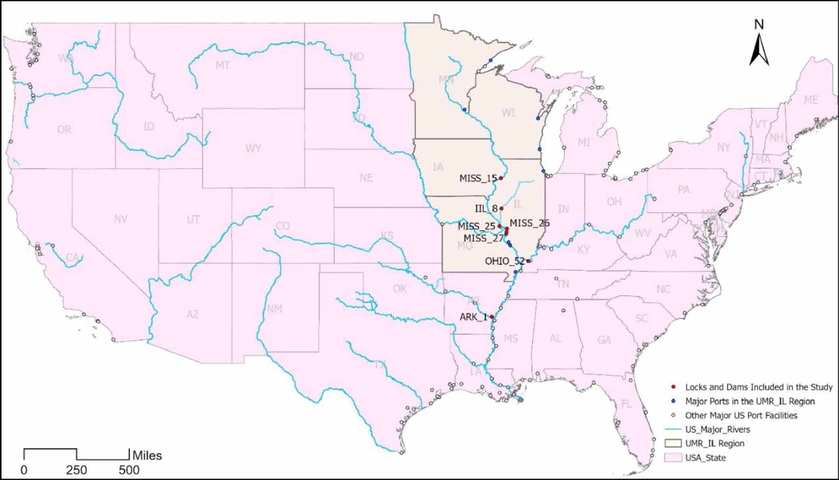Standard image High-resolution imageStudying this region is essential due to its role in transporting a significant portion of the nation's agricultural commodities, particularly grain exports. The UMR-IR waterways are heavily utilized and are vital to the national and global food supply chains. Additionally, the region's susceptibility to climate change-induced fluctuations, such as droughts and floods, makes it imperative to understand how these environmental changes impact navigation and operational efficiency. Insights gained from this study can help develop adaptive strategies to ensure the resilience and reliability of the waterway system, thereby safeguarding economic and operational viability.