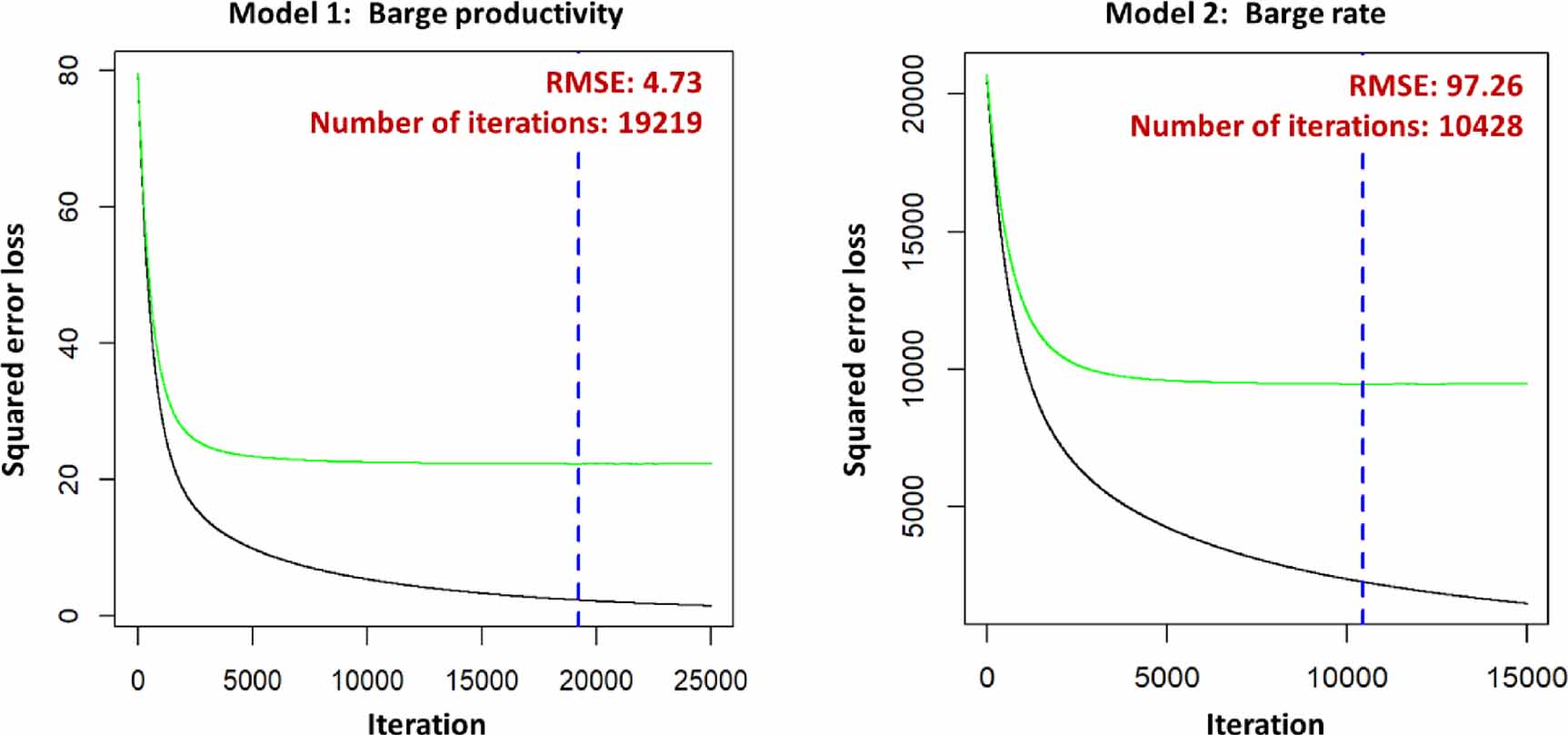 Figure 3. Model performance with RMSE and number of iterations with best performance under CV.
