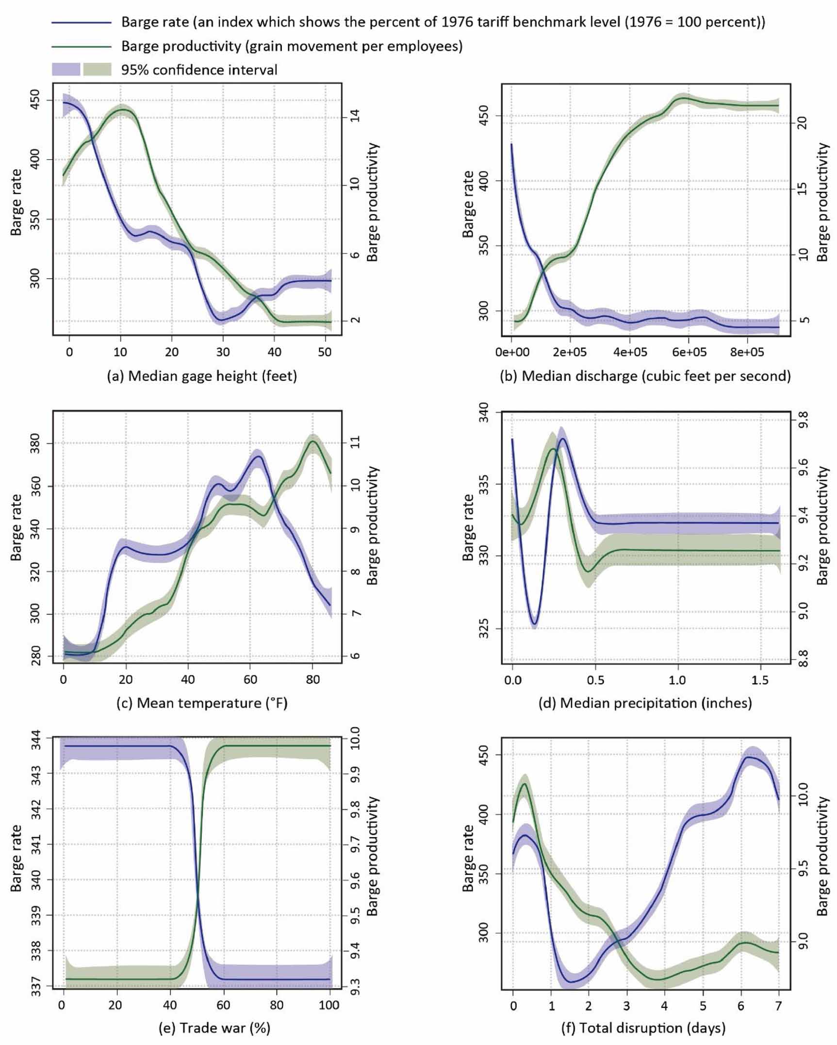 Figure 6. Non-linear relationships between inland barge shipping rate, productivity and various factors.