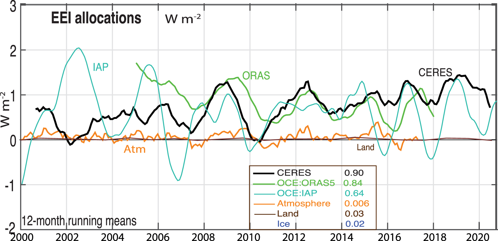 So how well is EEI known and does it matter? The discussion above makes the point that it matters a lot. Knowing how much extra energy affects weather systems and rainfall is vital to understand the increasing weather extremes. Moreover, because those weather events move energy around and help the climate system get rid of energy by radiating it to space, these processes also affect the rise in GMST. In other words, they affect the nature and magnitude of climate change, and have major implications for how well the outcomes can be modeled and predicted.