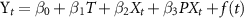 is the health outcome at time t; T is the time elapsed since the start of the study; β0 represents the baseline level at T = 0; β1 is the trend before plant closure; β2 indicates the step-level change in health outcome at the time of plant closure, as Xt