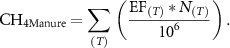 CH4Manure = CH4 emissions management, for a defined period Gg CH4 yr−1