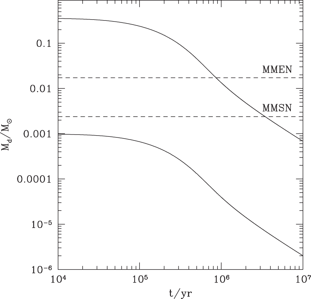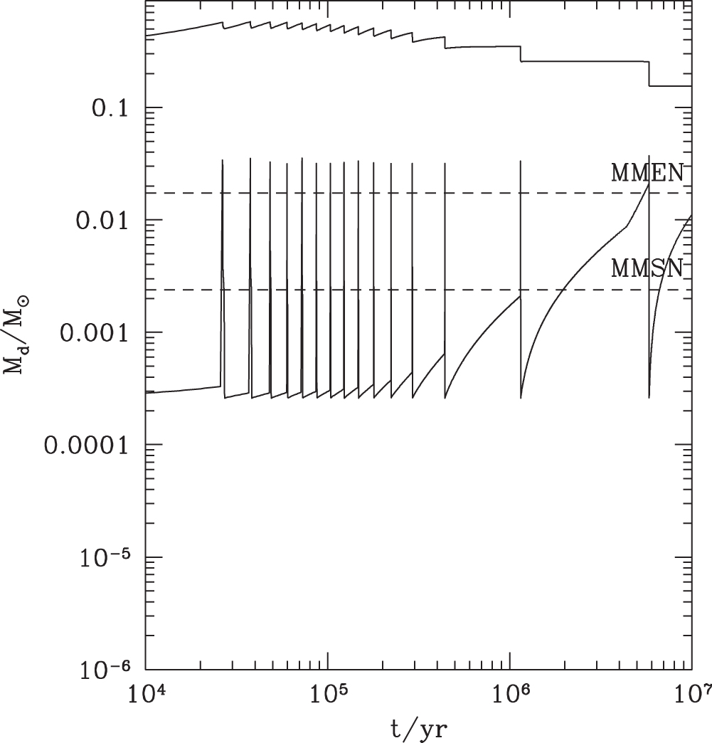 Standard image High-resolution imageFor this disk model, in which the dead zone lasts the entire lifetime of the disk, the total mass of the disk is somewhat high, around