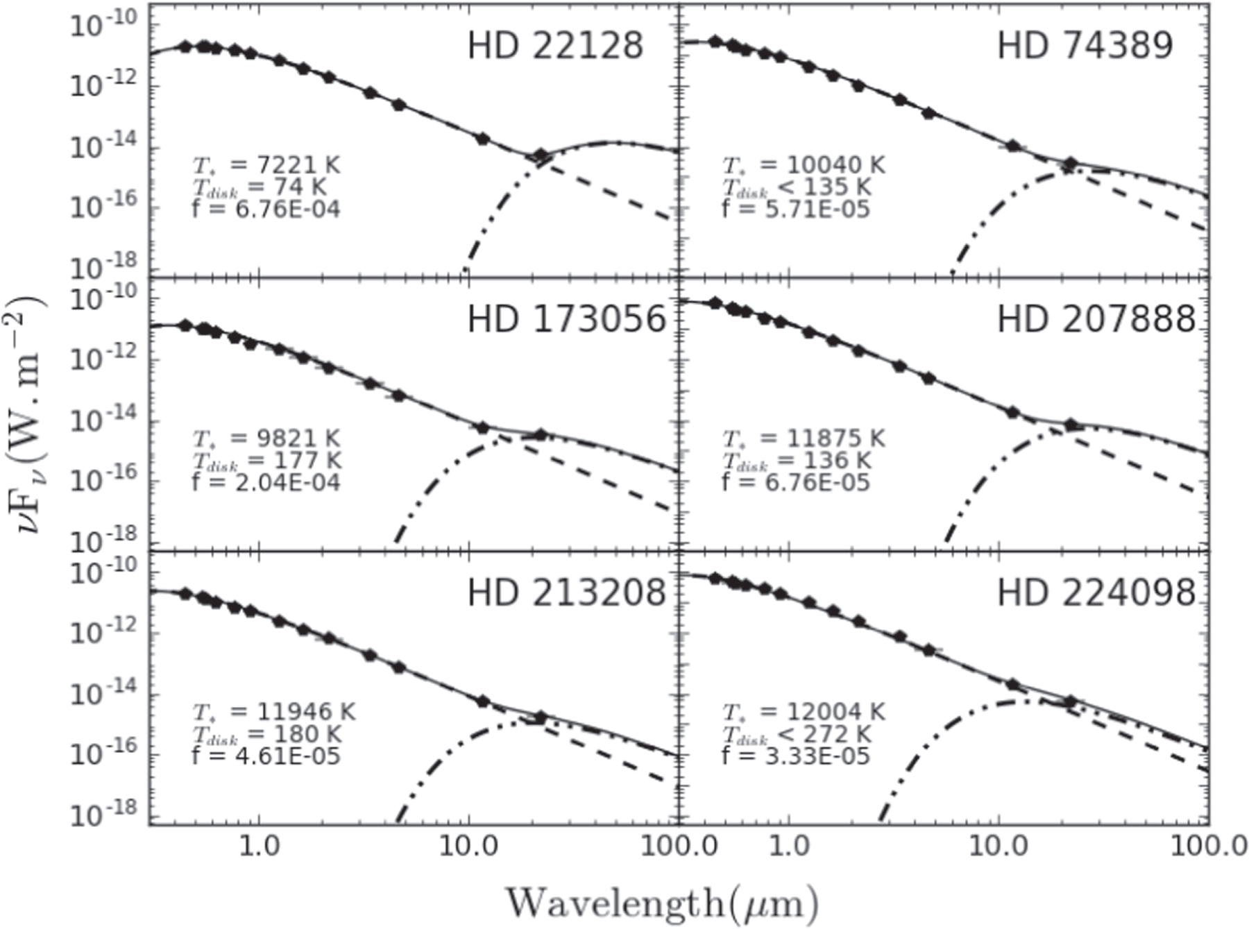 - HD 7406. The separation of this binary is ∼1' (Schmeidler 1987), wide enough that the companion probably does not contaminate the WISE photometry.
