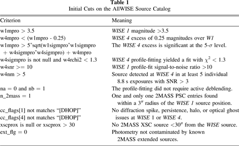 Table 1. Initial Cuts on the AllWISE Source Catalog