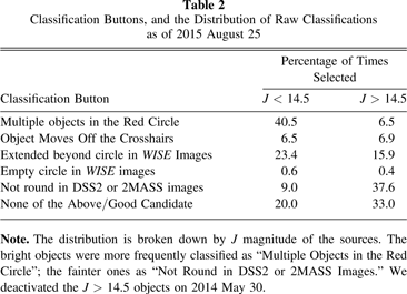 Table 2. Classification Buttons, and the Distribution of Raw Classifications as of 2015 August 25