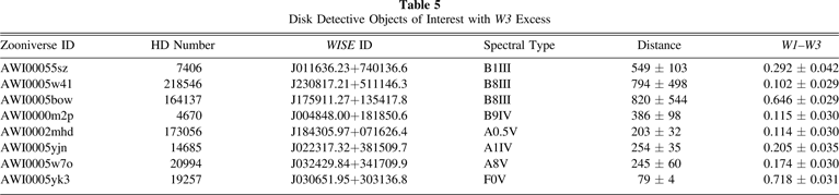 Table 5. Disk Detective Objects of Interest with W3 Excess