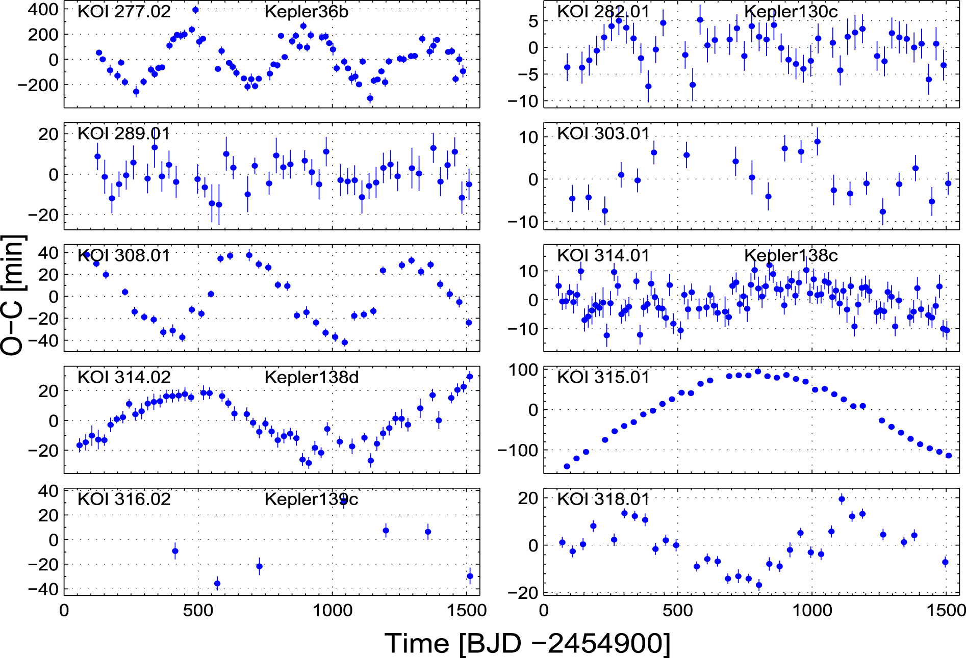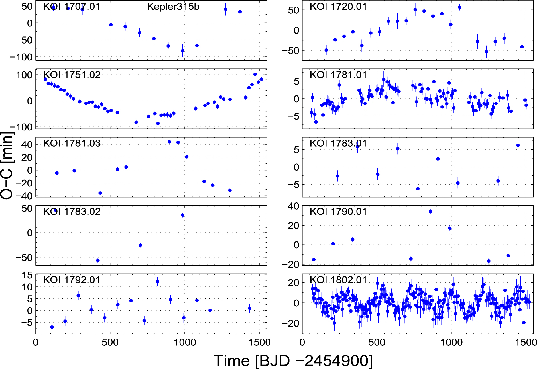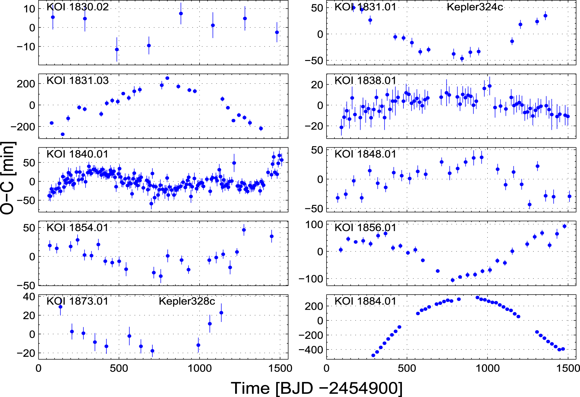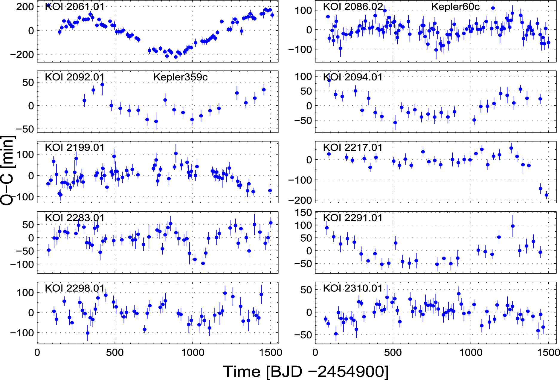 Standard image High-resolution imageFigure 3. KOIs with significant long-term TTVs.