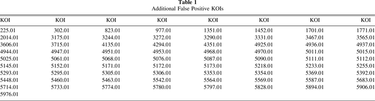 - 5.KOIs identified by this study as false alarm, listed in Table 1, with some evidence for stellar binarity or pulsation.