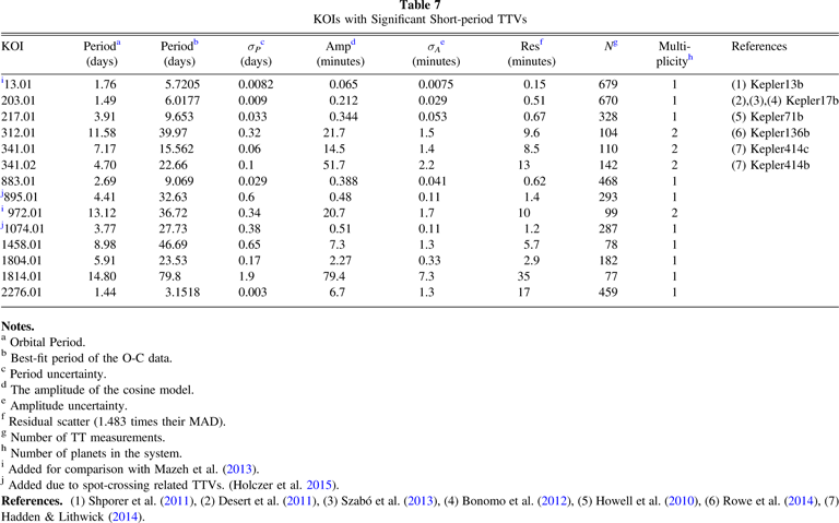 - 3.The orbital period >300 days; those KOIs were ignored due to too few transits for a significant TTV analysis.