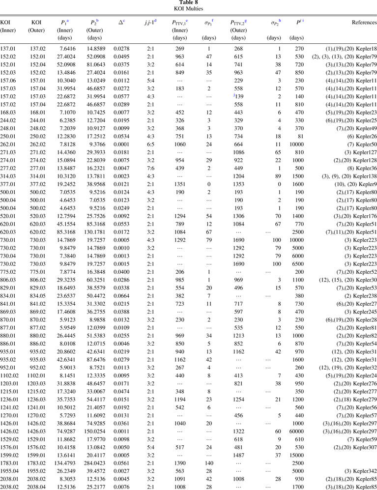 | 730.02 | 730.01 | 9.8479 | 14.7869 | 0.0010 | 3:2 | ⋯ | ⋯ | 1292 | 79 | 5000 | (3) Kepler223 |