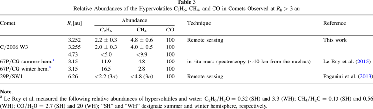 Table 3. Relative Abundances of the Hypervolatiles C2H6, CH4, and CO in Comets Observed at Rh > 3 au