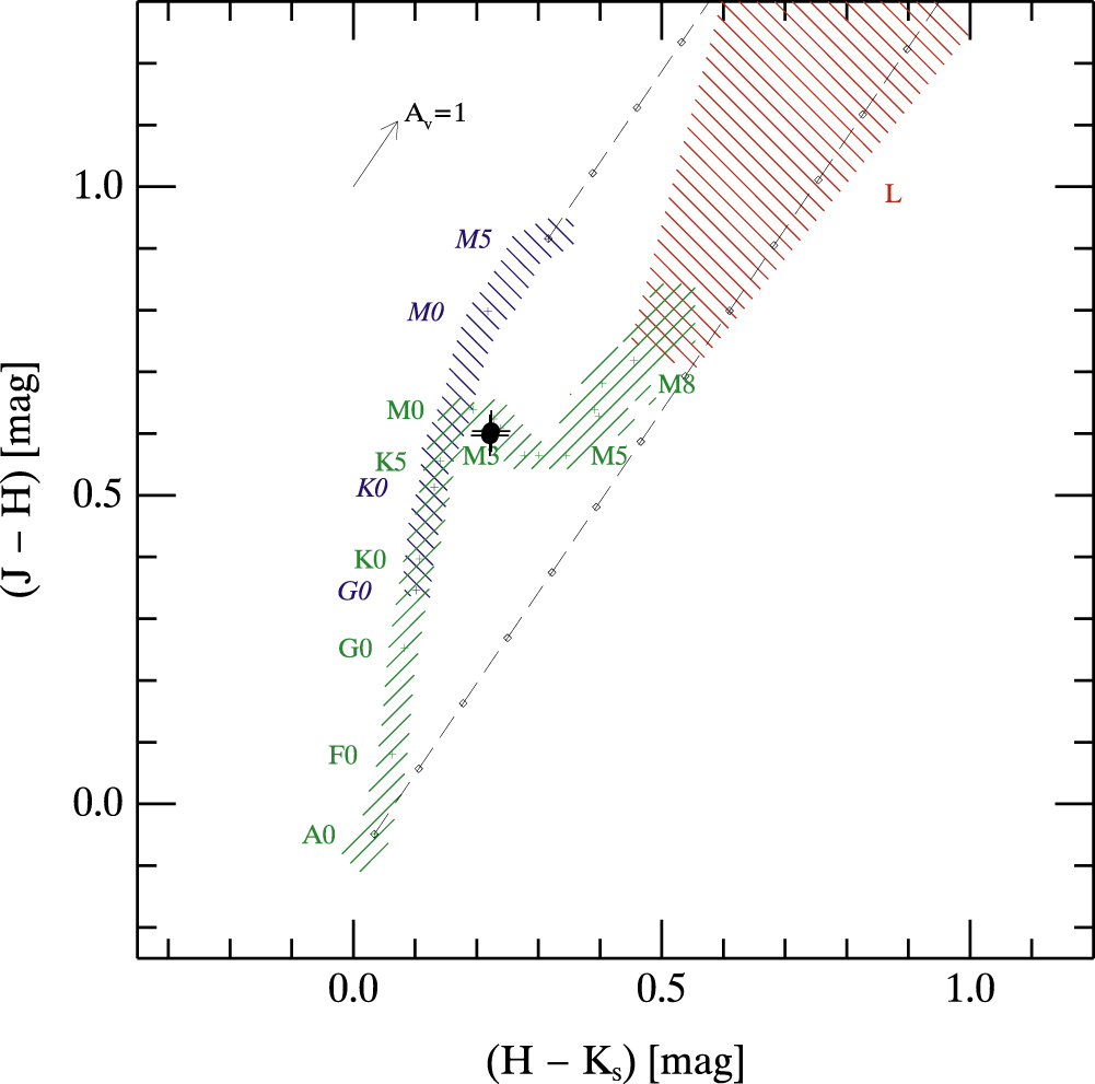 Standard image High-resolution imageWe used the SpeX spectrum to approximate the fundamental parameters of the star (metallicity, [Fe/H]; effective temperature, Teff; radius,