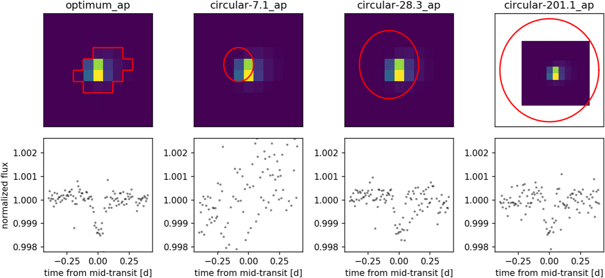 2), the binary was unresolved in the Spitzer images. Photometry of the blended binary point-spread function (PSF) was obtained using circular apertures and the background was estimated and subtracted following a procedure similar to Beichman et al. (2016). The aperture was then chosen by selecting the light curve with minimal white and red noise statistics, as computed by the standard deviation and the red noise factor β (Pont et al. 2006; Winn et al. 2008, Livingston et al. 2019). Following this procedure, an aperture radius of 2.3 pixels was found to yield the lowest noise, which is consistent with the optimal apertures found in previous studies (e.g., Beichman et al. 2016; Knutson et al. 2012). We then binned the light curve and pixel data to 60 s, as this has been shown to yield an improved systematics correction without affecting the information content of the light curve (e.g., Benneke et al. 2017).