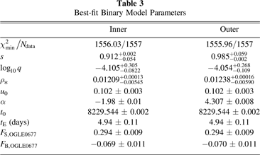 au for the inner and outer solutions, respectively. The lens system is estimated to be at a distance of