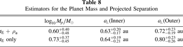 Standard image High-resolution imageTable 8. Estimators for the Planet Mass and Projected Separation