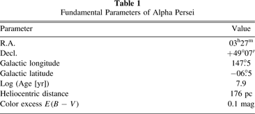 Table 3. Mean Velocities of the Different Populations in the Vicinity of Alpha Persei Cluster