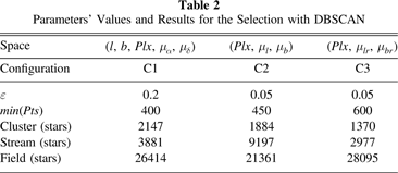 Table 2. Parameters' Values and Results for the Selection with DBSCAN