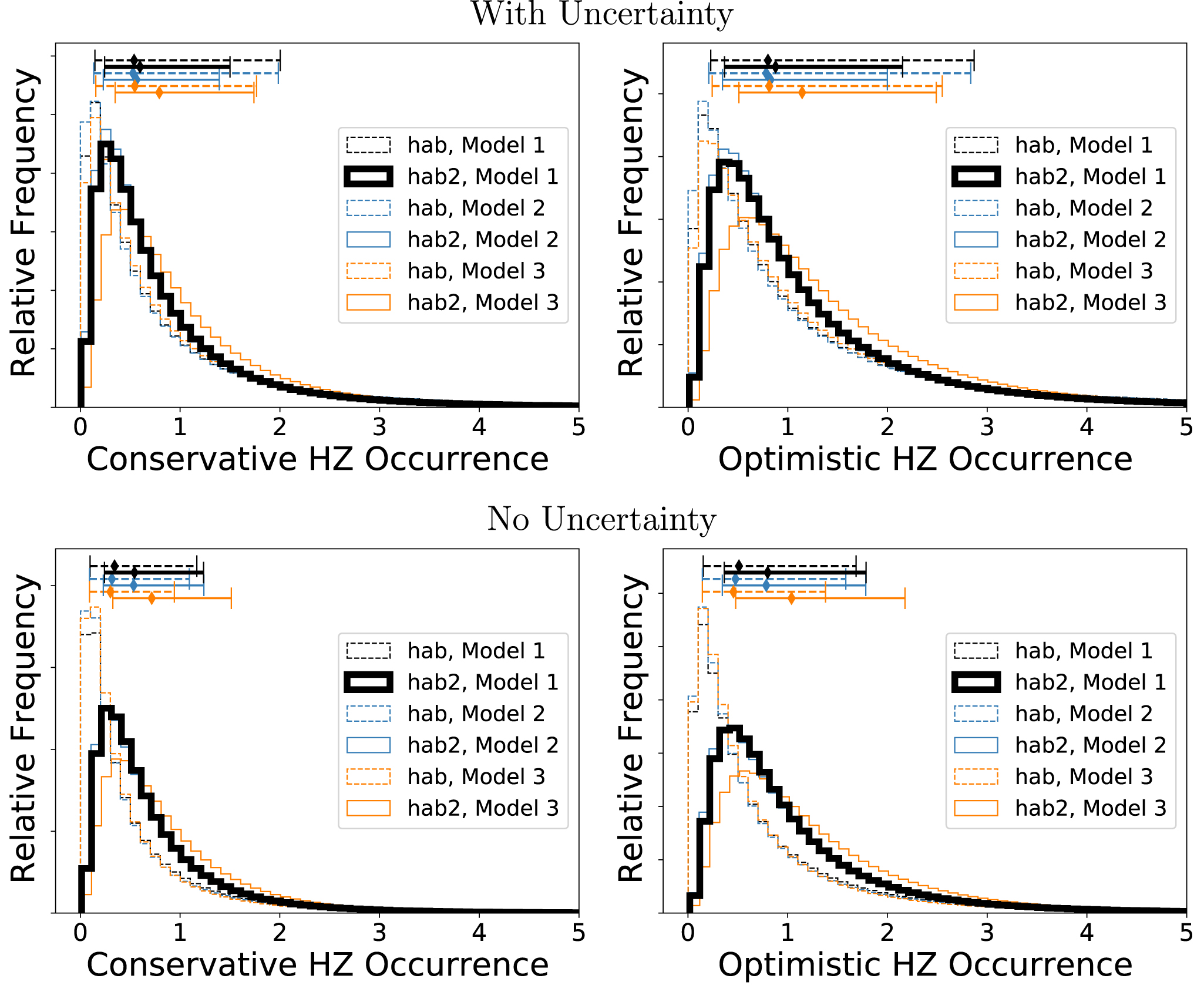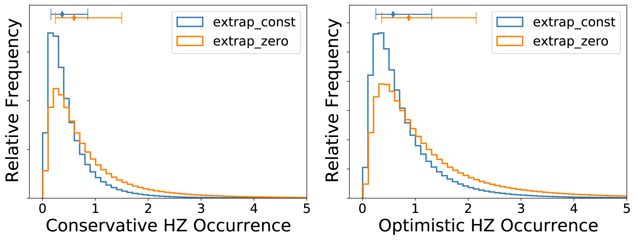 planets per star, while the optimistic HZ occurrence is between