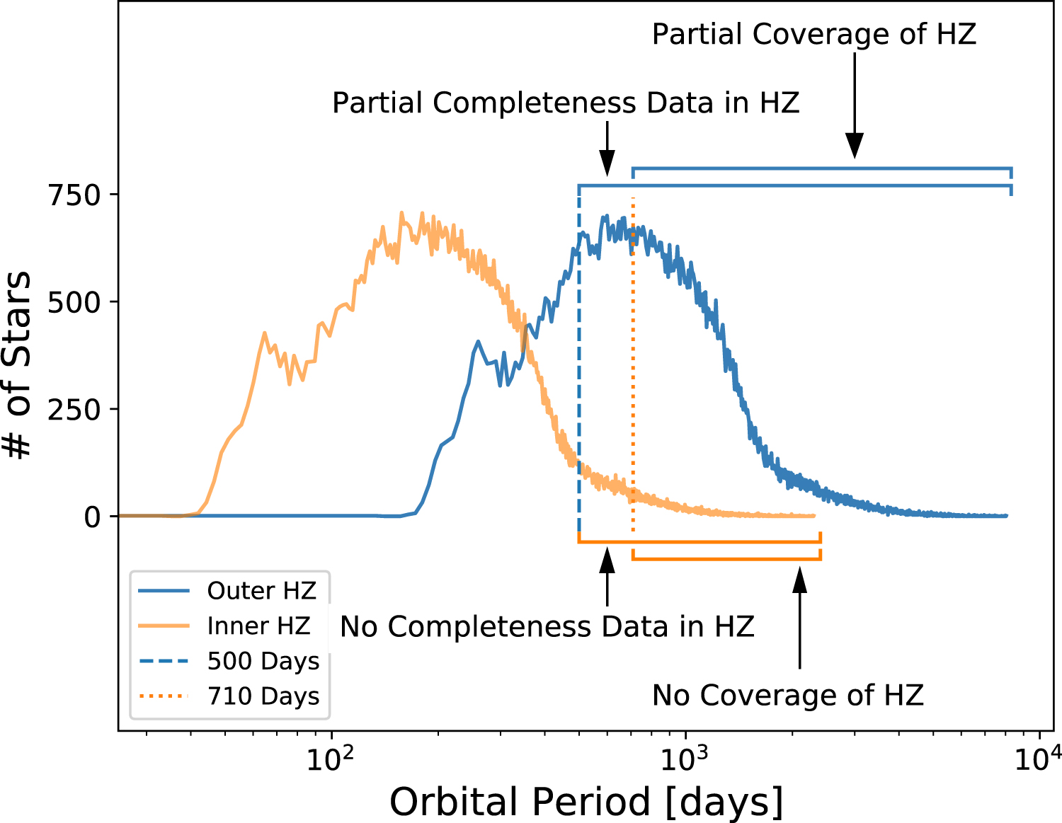Identifying HZ rocky planets proved to be a greater challenge than anticipated. Based on the sensitivity of the Kepler photometer and the expectation that solar variability was typical of quiet main-sequence dwarfs, it was believed that 4 years of observation would detect a sufficient number of rocky HZ planets to constrain their frequency of occurrence. However, Kepler observations showed that stellar variability is, on average, ∼50% higher than solar variability (Gilliland et al. 2011), which suppressed the number of HZ rocky planets that could be detected in 4 years. In response, Kepler's observational time was extended to 8 years, but the failure of reaction wheels, required to maintain precise pointing, prevented the continuation of high-precision observations in the original Kepler field after 4 years (Howell et al. 2014). Furthermore, by definition, Kepler planet candidates must have at least three observed transits. The longest orbital period with three transits that can be observed in the 4 years of Kepler data is 710 days (assuming fortuitous timing when the transits occurred). Given that the HZs of many F and late G stars require orbital periods longer than 710 days, Kepler was not capable of detecting all HZ planets around these stars.