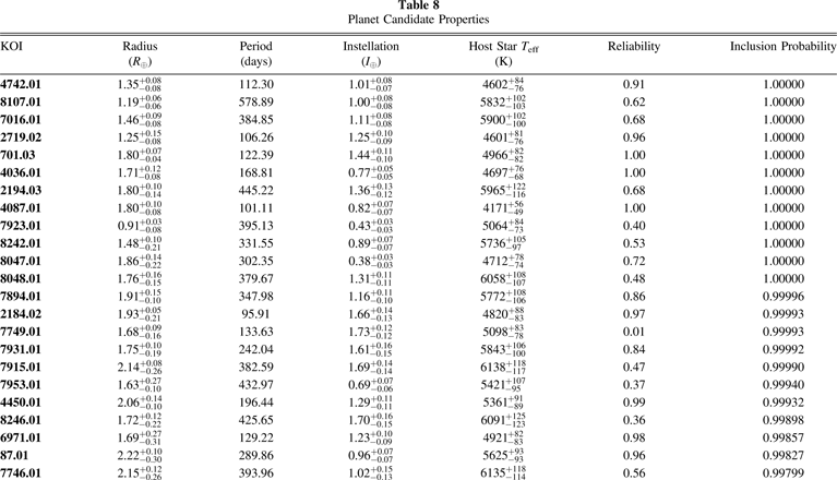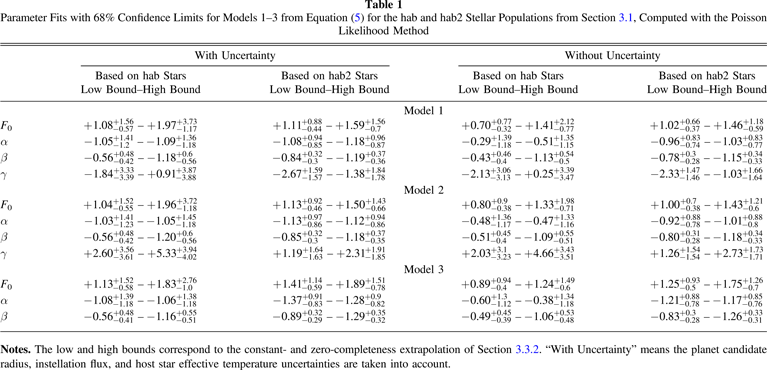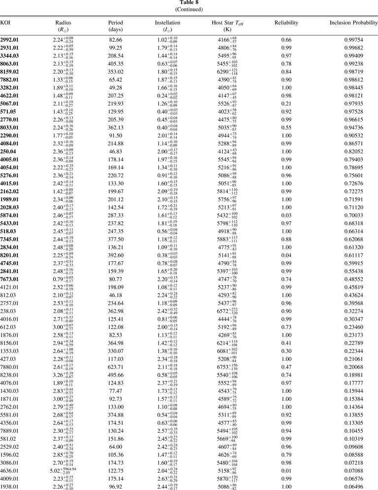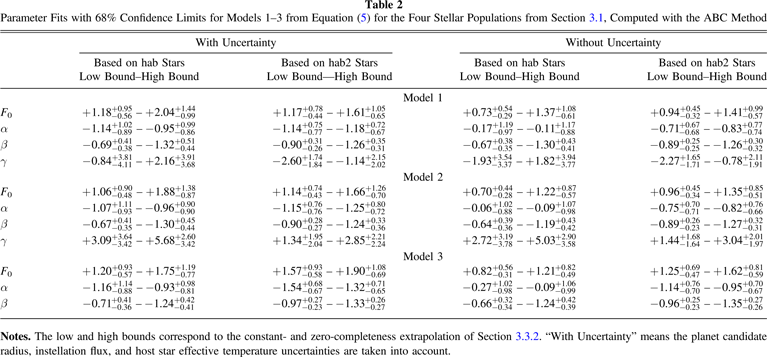 Standard image High-resolution imageTable 9. Fit Coefficients for the Alternative Planet Candidate Catalogs Using the hab2 Population with Zero-completeness Extrapolation