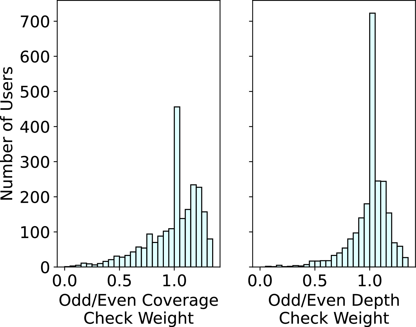 Standard image High-resolution imageFigure 20. Histograms of user weights for both the data coverage check and transit depth check in the Odd/Even Transit Check. The apparent spikes at wj (OC) = 1 and wj (OD) = 1 are due to the large spread in weights for these responses, resulting in the fixed weights of users who only classified one subject to be more obvious compared with the full distribution of weights.