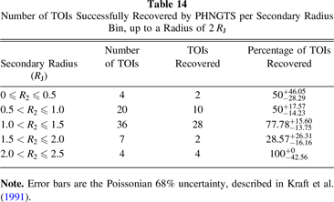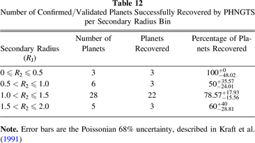 Table 12. Number of Confirmed/Validated Planets Successfully Recovered by PHNGTS per Secondary Radius Bin
