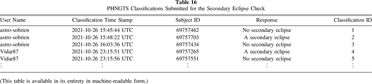 Table 16. PHNGTS Classifications Submitted for the Secondary Eclipse Check