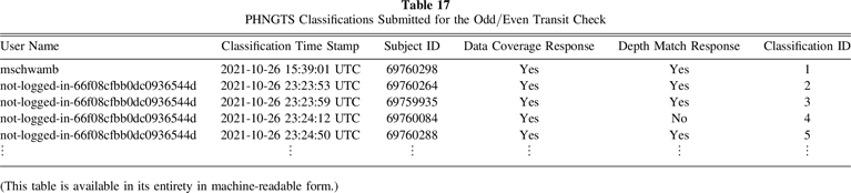 Table 17. PHNGTS Classifications Submitted for the Odd/Even Transit Check