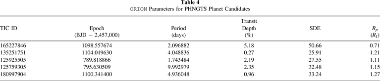 where Tdur and P are the transit duration and orbital period measured by ORION, respectively. Here, we describe each of the three workflows that constitute the PHNGTS project.