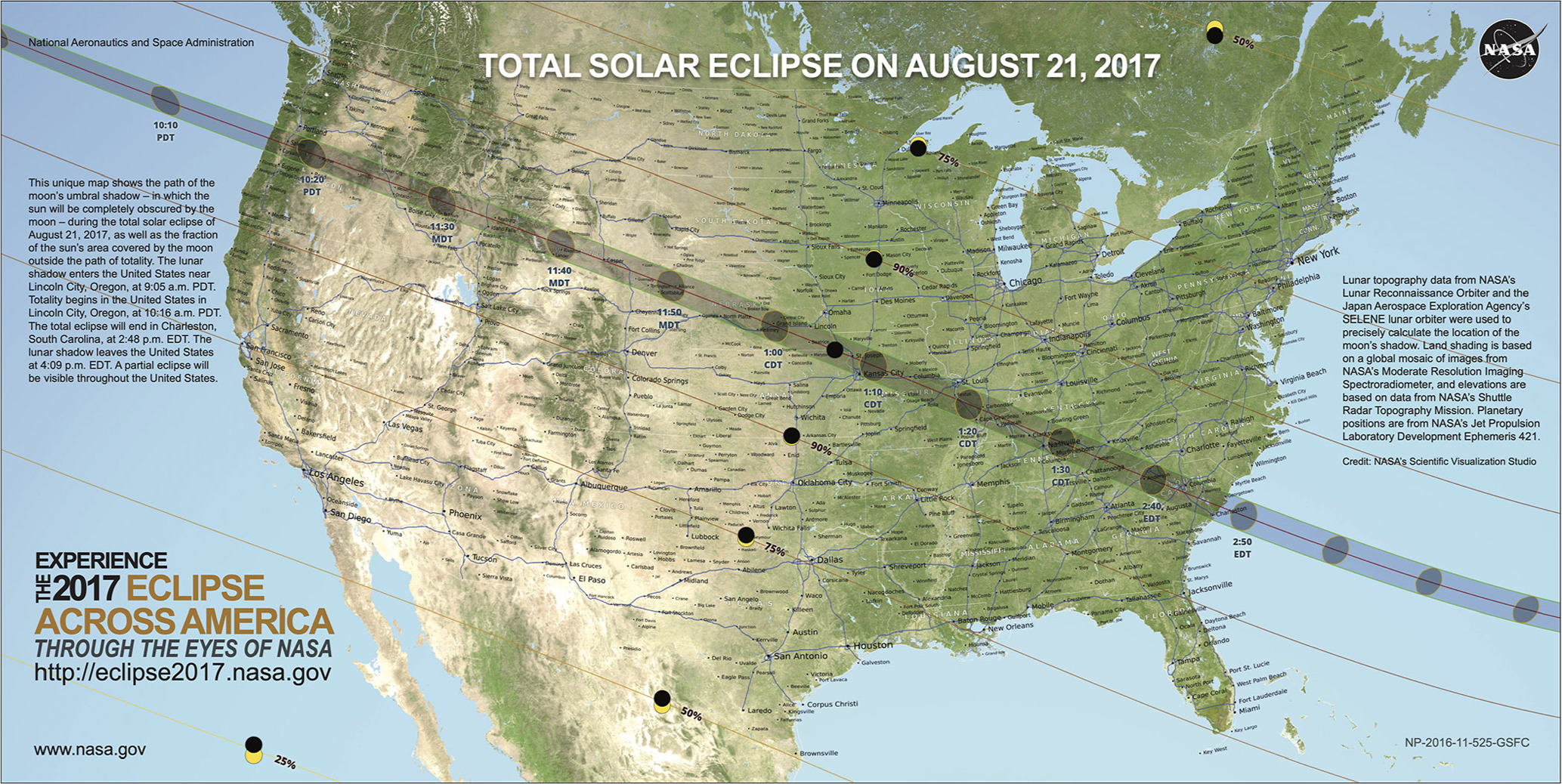 Figure 10. The first print edition of the NASA 2017 eclipse map. This was printed at 21 × 11 inches and either rolled or folded. https://eclipse2017.nasa.gov/static/img/downloadables/NASA_map_508.pdf.