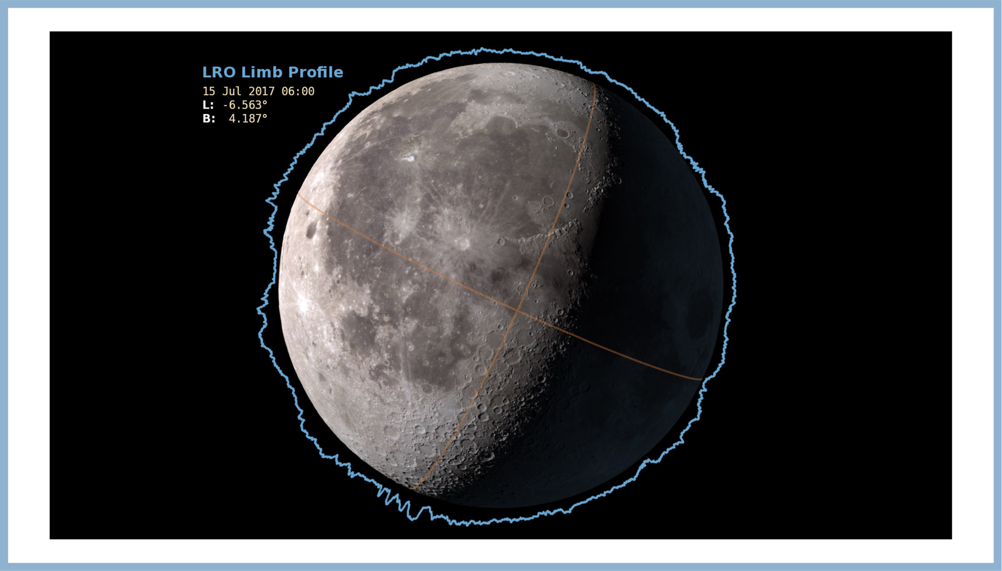 Video Standard image High-resolution imageSeveral attempts were made in the first half of the 20th century to catalog the Moon's limb (Kopal 1965; Weimer 1979). By far the most influential and comprehensive were the charts published by Chester Burleigh Watts (Watts 1963; Dick 2002; Herald 2006). Although flawed (Scott 1988), the Watts limb profiles remained in use for eclipse and occultation timing for half a century before finally being supplanted by global laser altimetry data from lunar orbiting spacecraft: JAXA's SELENE (also known as Kaguya) mission (Araki et al. 2009) and NASA's Lunar Reconnaissance Orbiter (LRO; Smith et al. 2017).