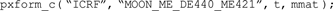 | pxform_c( "ICRF", "MOON_ME_DE440_ME421", t, mmat ); |