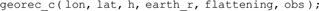 | georec_c( lon, lat, h, earth_r, flattening, obs ); |