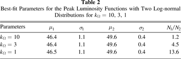 Best-fit Parameters for the Peak Luminosity Functions with Two Log-normal Distributions for