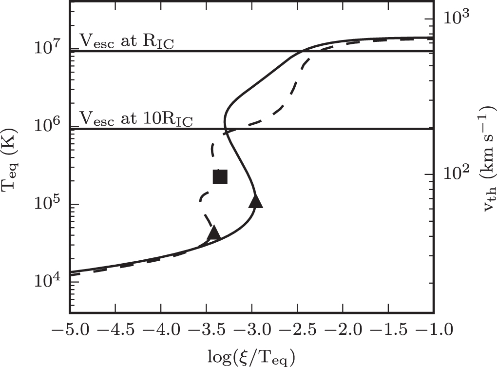 . We see that gas on the upper stable branch has a thermal velocity in excess of the escape velocity at