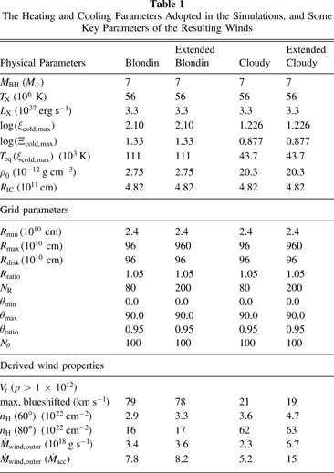 Standard image High-resolution imageIn our simulations, we are interested in modeling outflowing gas arising from the surface of an accretion disk. Points lying on the cool stable branch are in thermal equilibrium at a relatively low temperature, and do not contribute to any outflow. They can be considered to be a part of a stable accretion disk atmosphere and we therefore wish to exclude such cells from our simulation. Maximum heat input to the gas is achieved for gas with an ionization parameter of