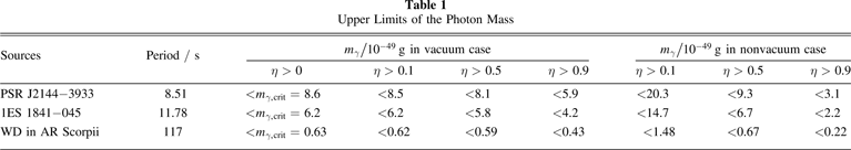 Table 1. Upper Limits of the Photon Mass