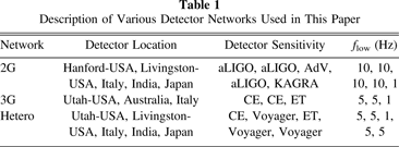 , using the detector networks listed in Table 1, and the results in various observational scenarios are as follows.