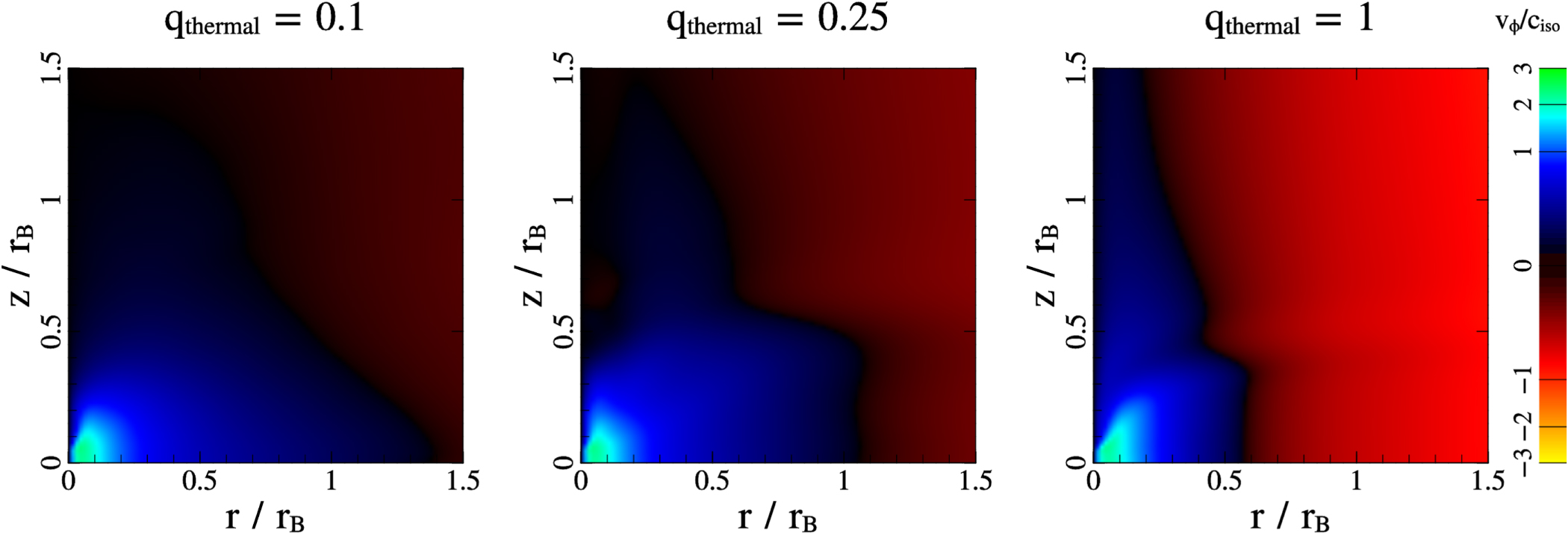 Interestingly, as planet mass increases and becomes superthermal, isothermal and adiabatic results seem to converge, as seen in the right panels of Figures 18 and 19. This implies that when the planet is superthermal, CPD dynamics is dictated by gravity and the EOS is relegated to a more minor role.